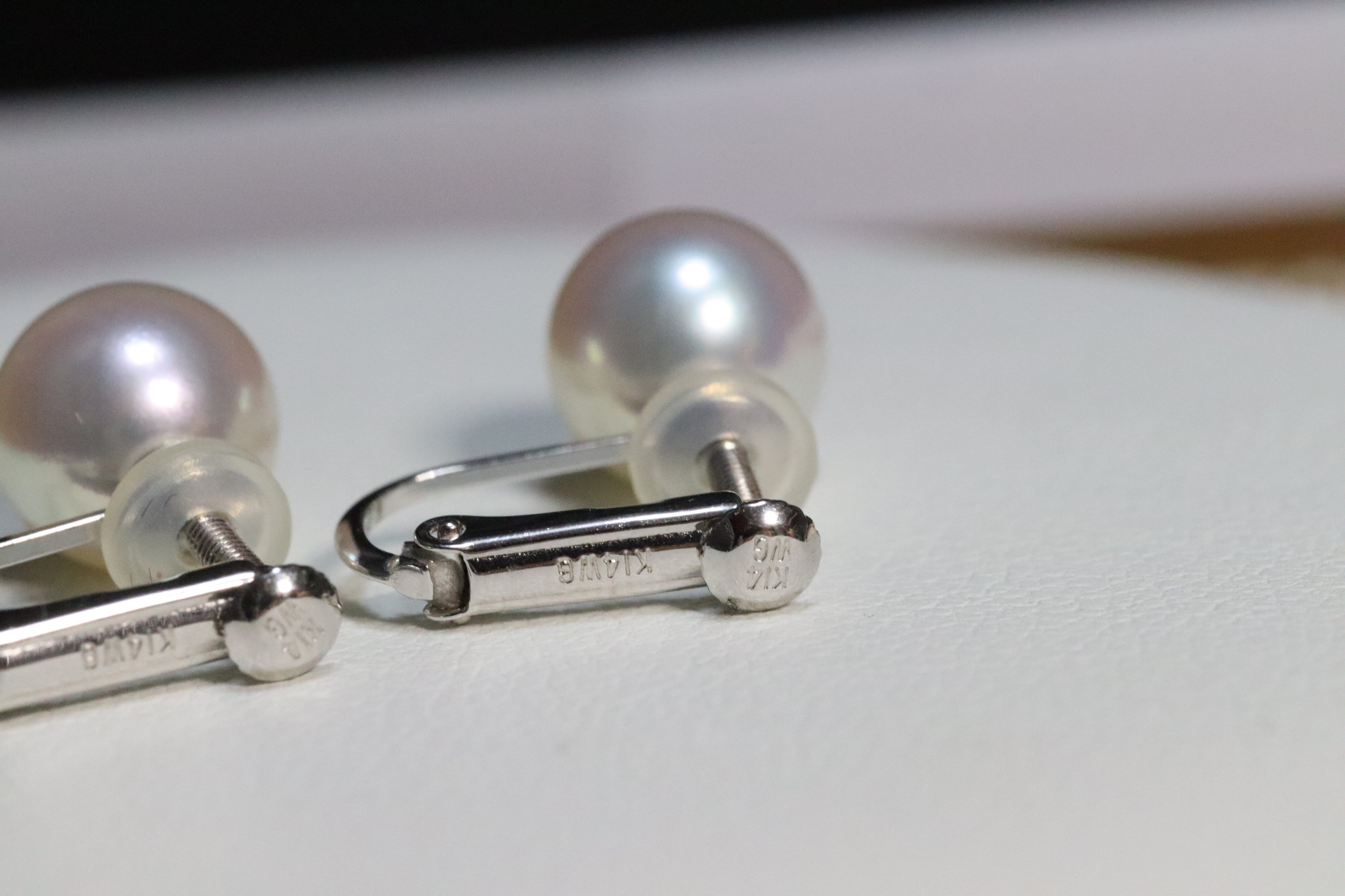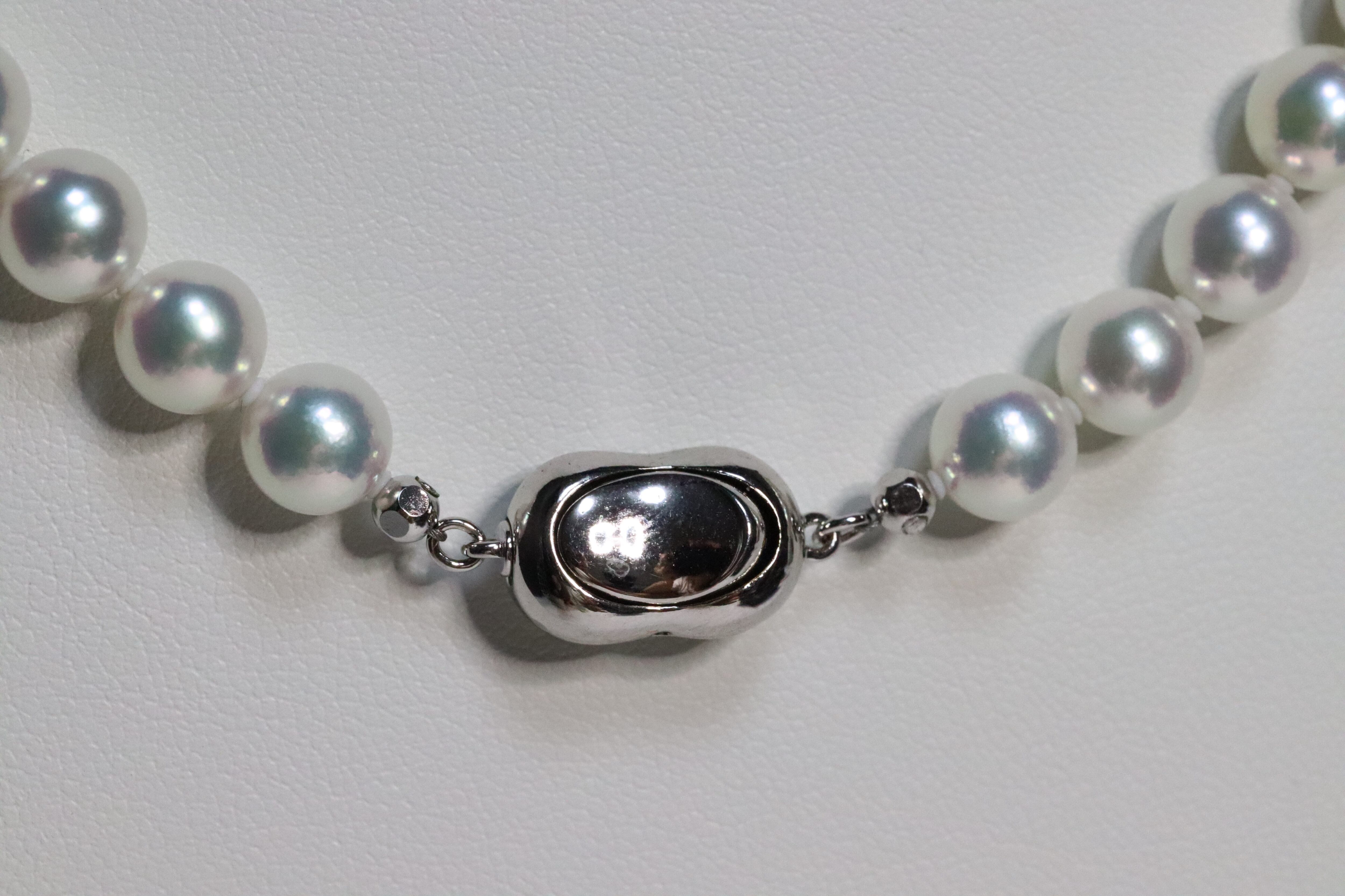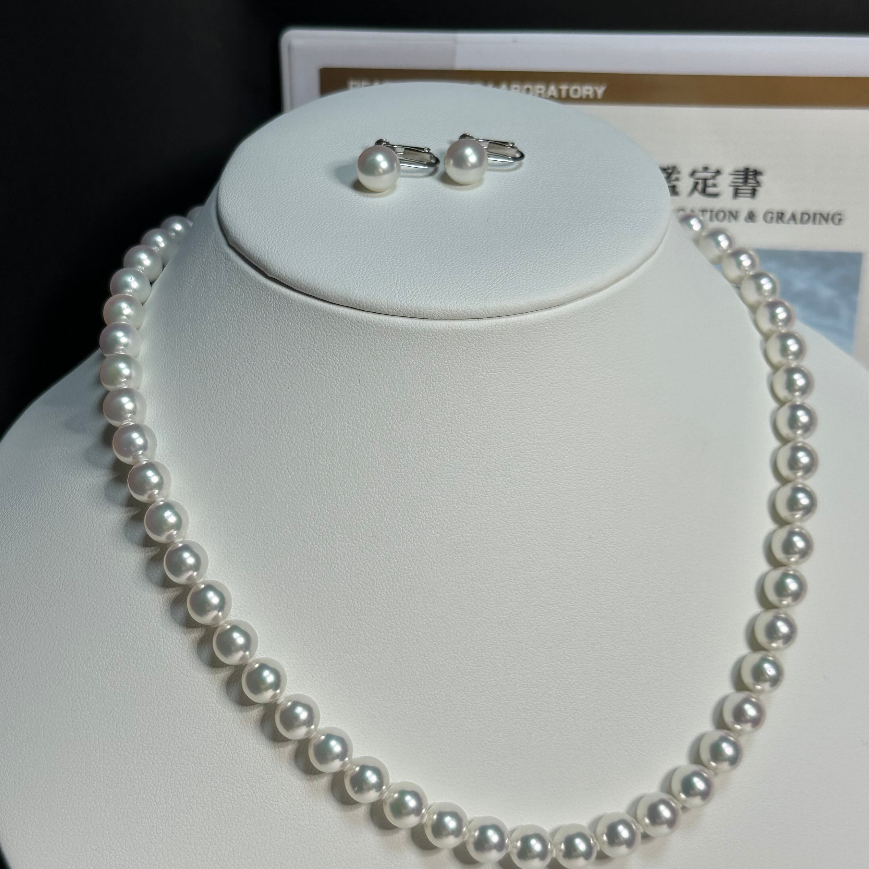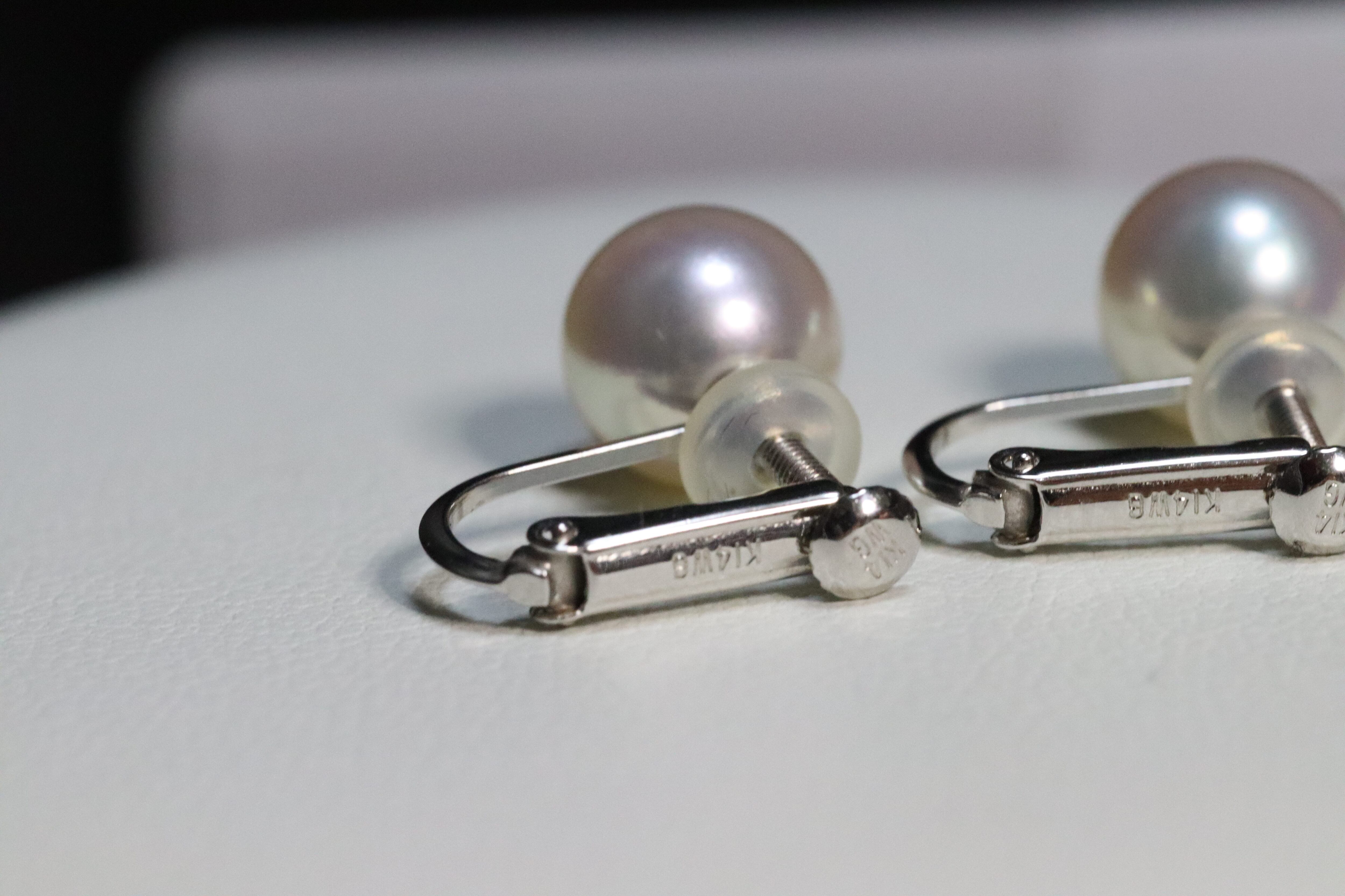 真珠科学研究所が誇るこの逸品は、他のアコヤ真珠とは一線を画す高い品質を誇ります。7.5〜8mmの大きさは存在感があり、K14WGのホワイトゴールドで繊細な装いも引き立てます。