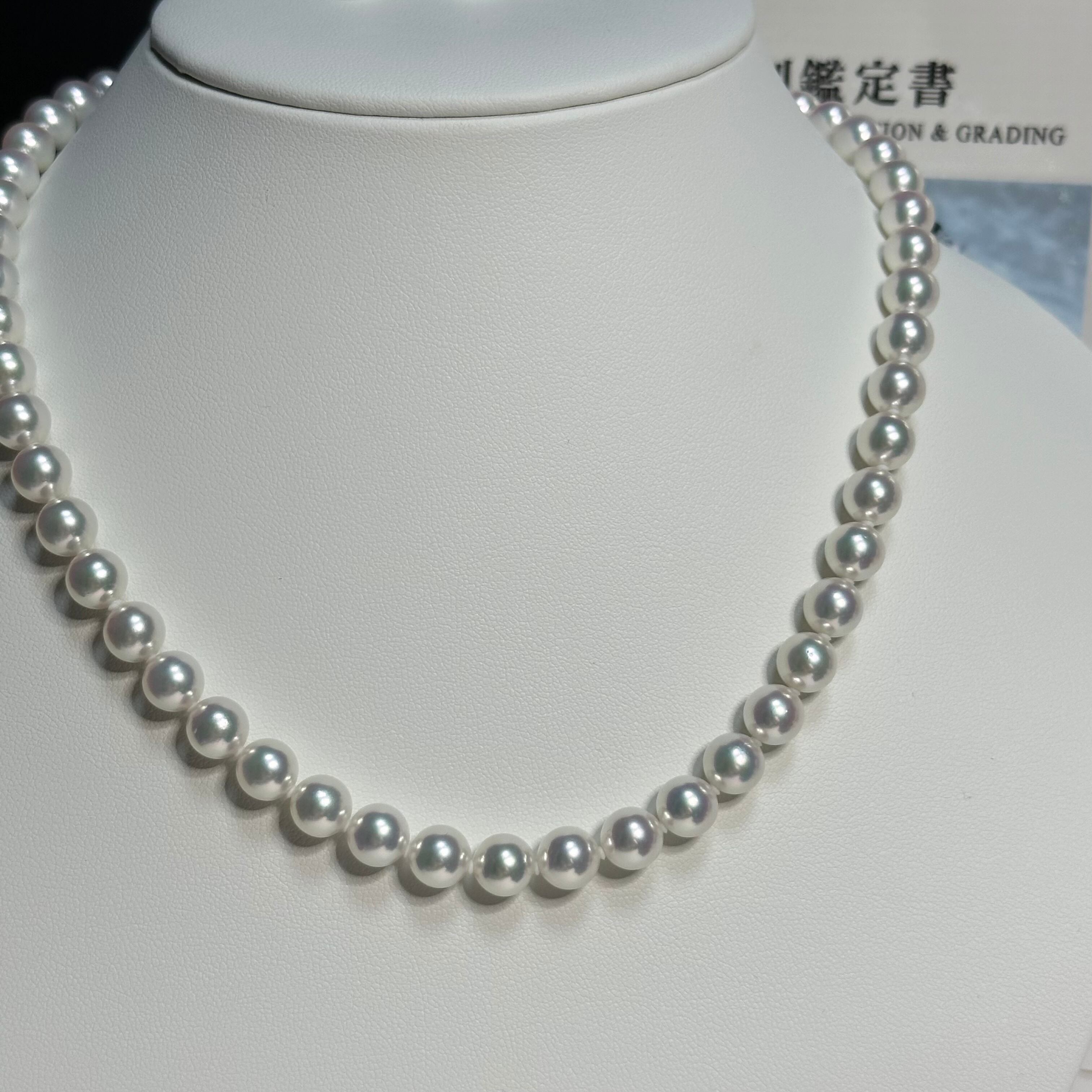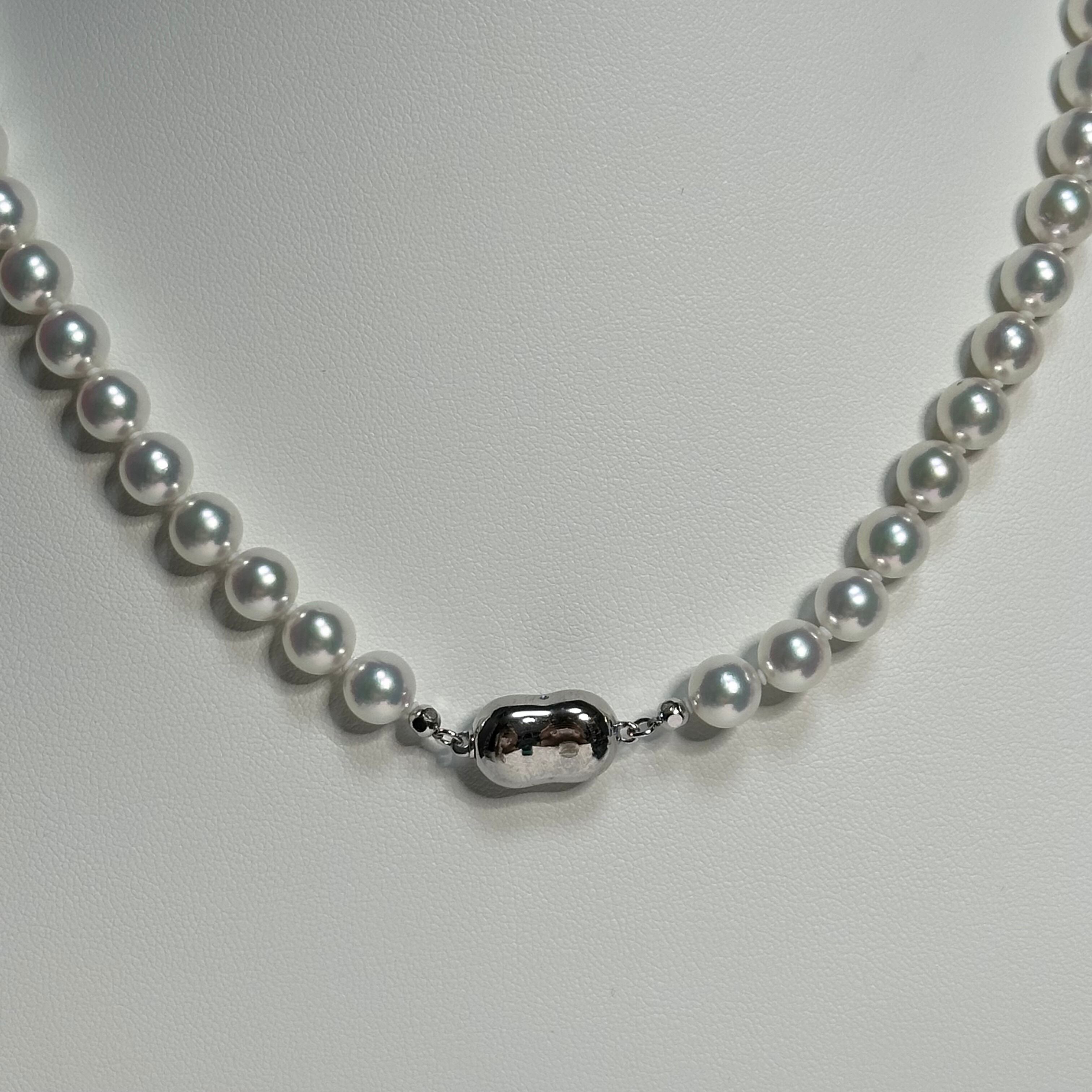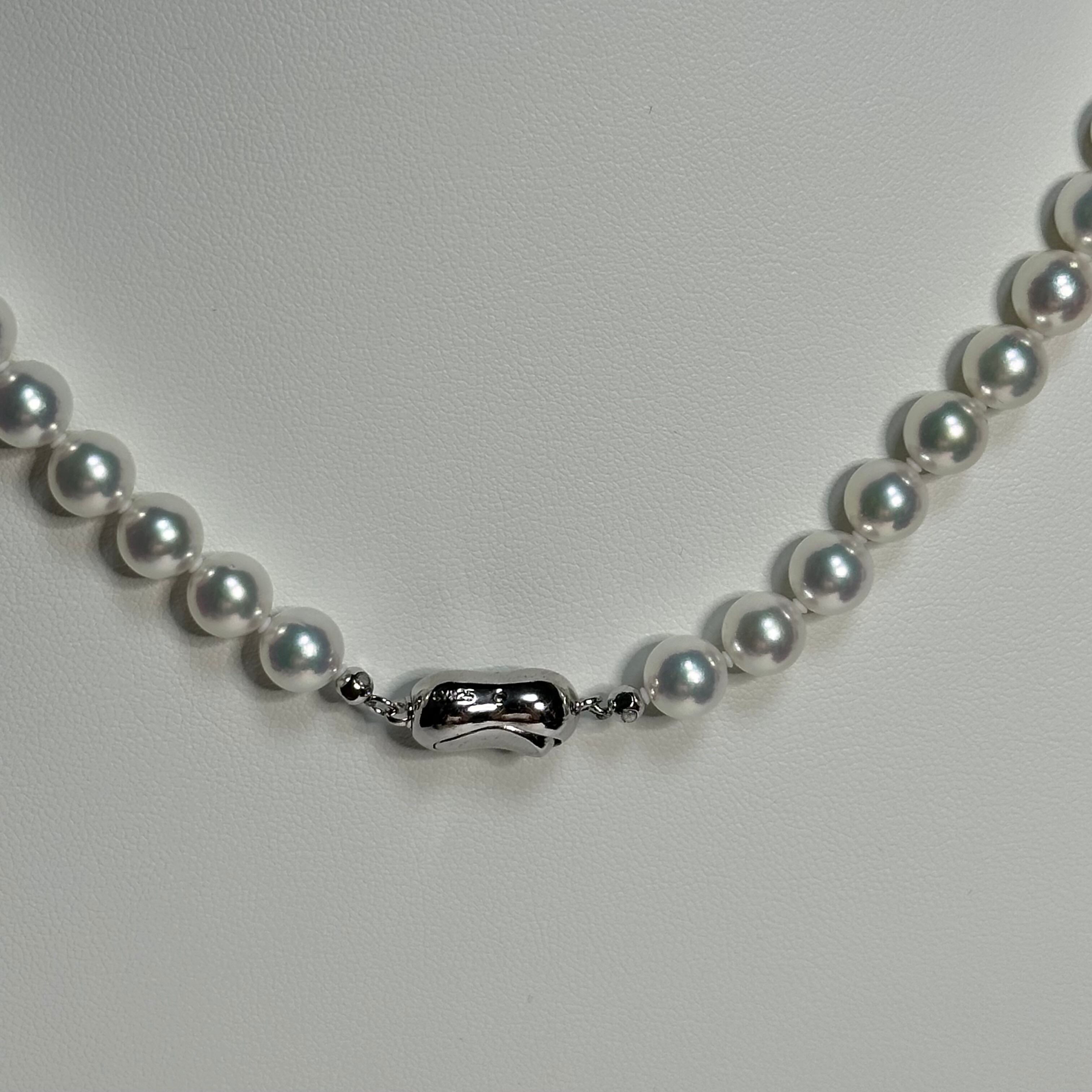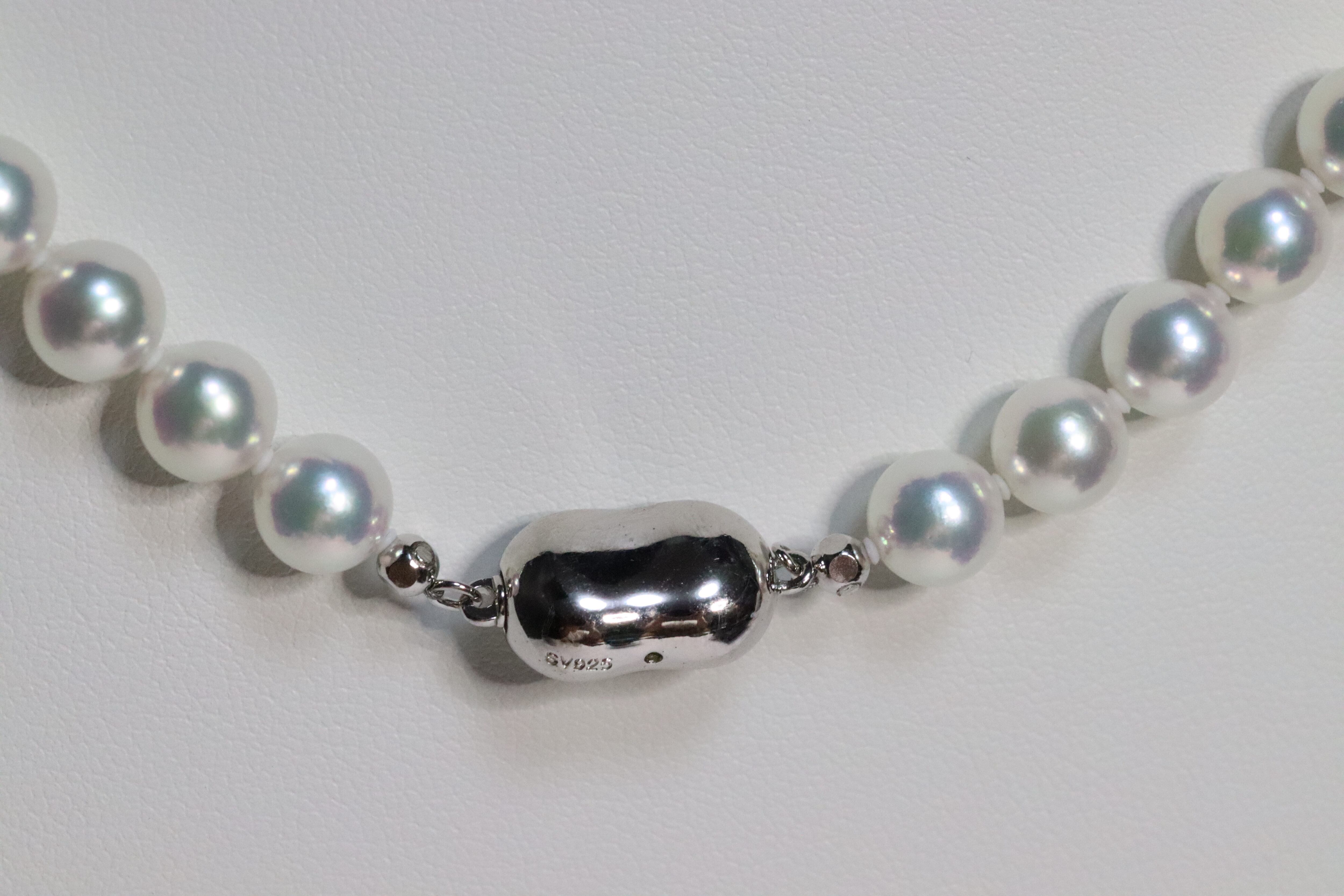 真珠科学研究所が誇るこの逸品は、他のアコヤ真珠とは一線を画す高い品質を誇ります。7.5〜8mmの大きさは存在感があり、K14WGのホワイトゴールドで繊細な装いも引き立てます。